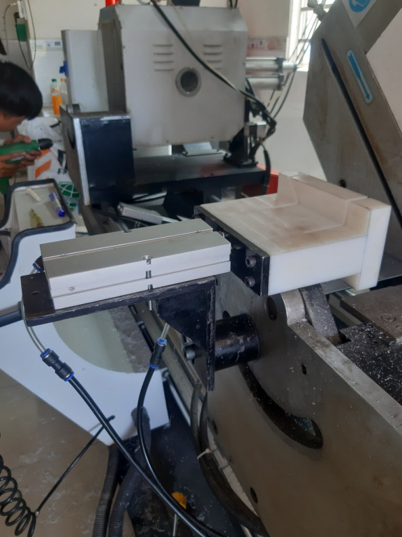 Dùng để gá kẹp phôi cho máy cắt nhôm một đầu, hai đầu. Tác dụng: chống văng, chống đập, cắt không bị lẹm, bảo vệ lưỡi cắt khỏi cong vênh.